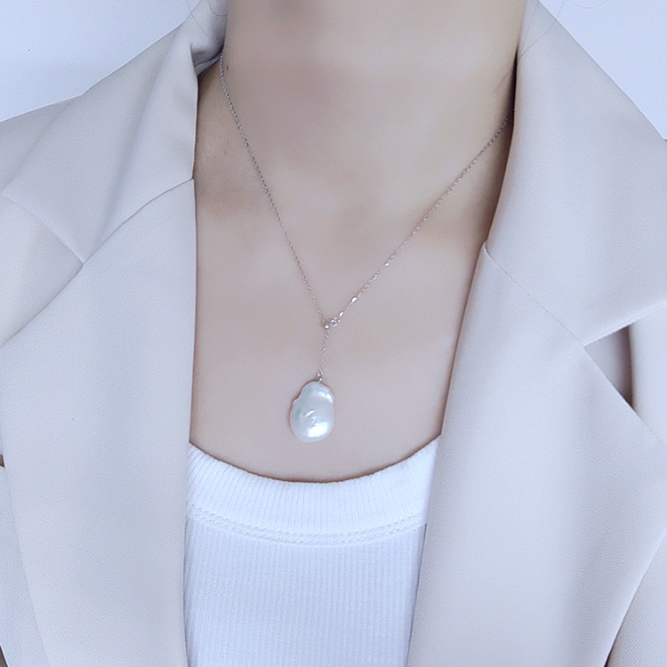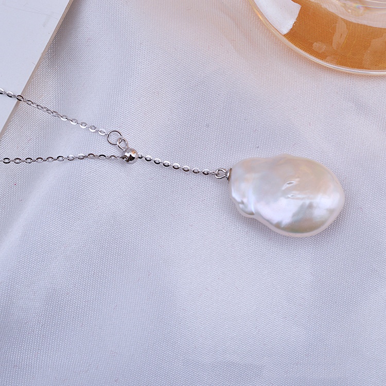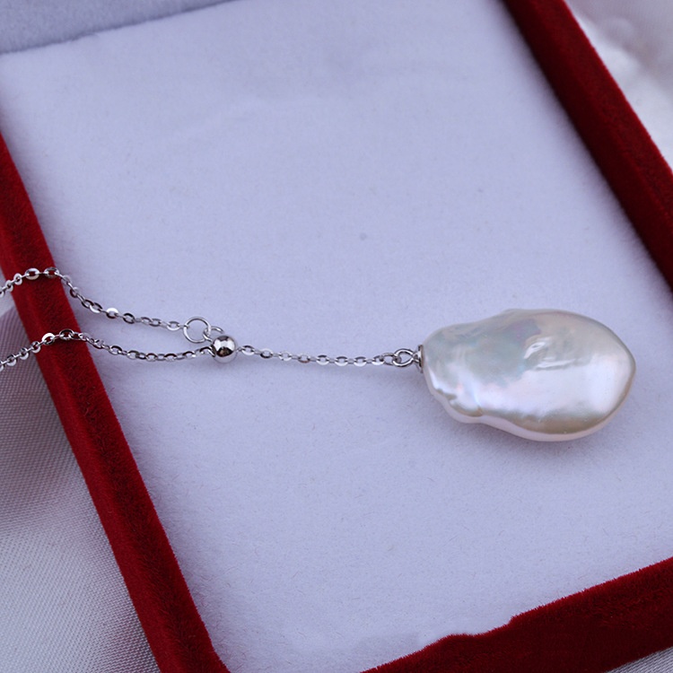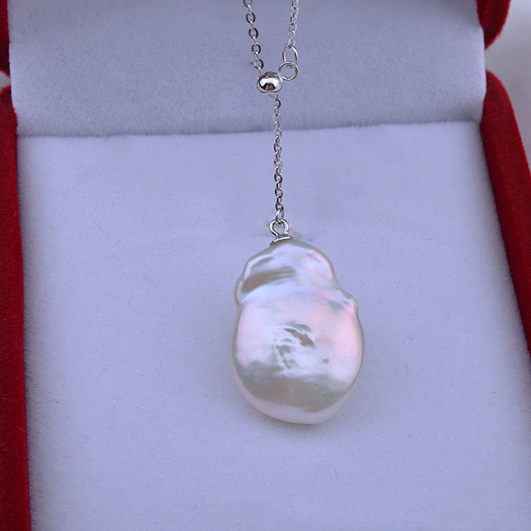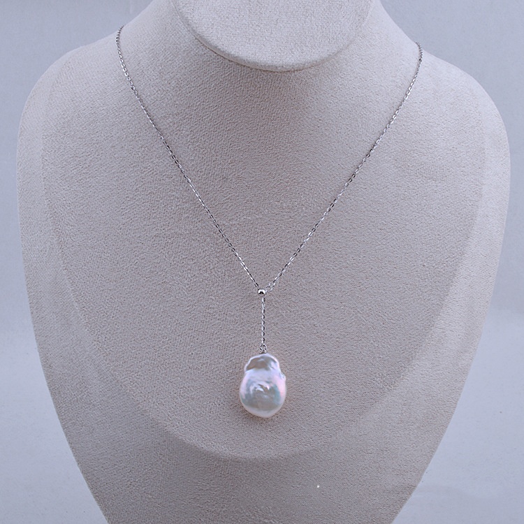 Freshwater Pearl Shaped Baroque Pendant 925 Sterling Silver Button Necklace