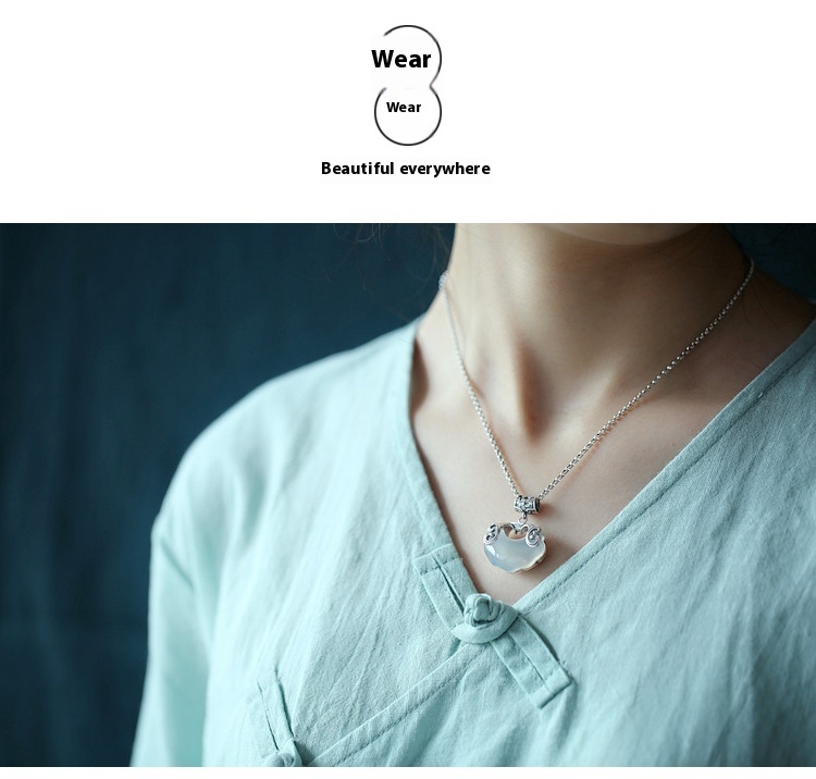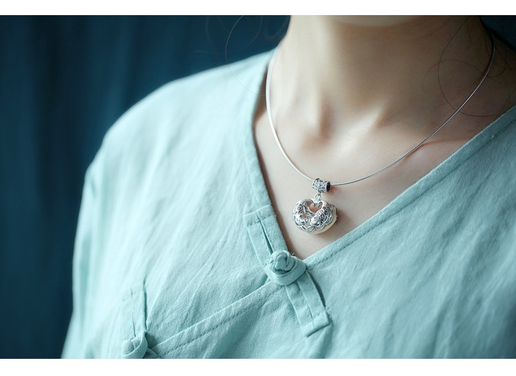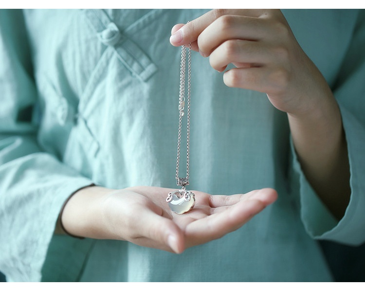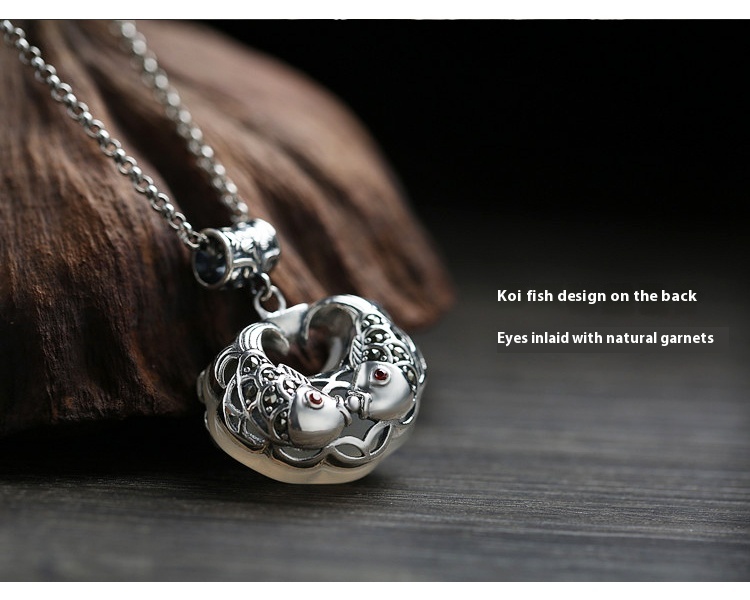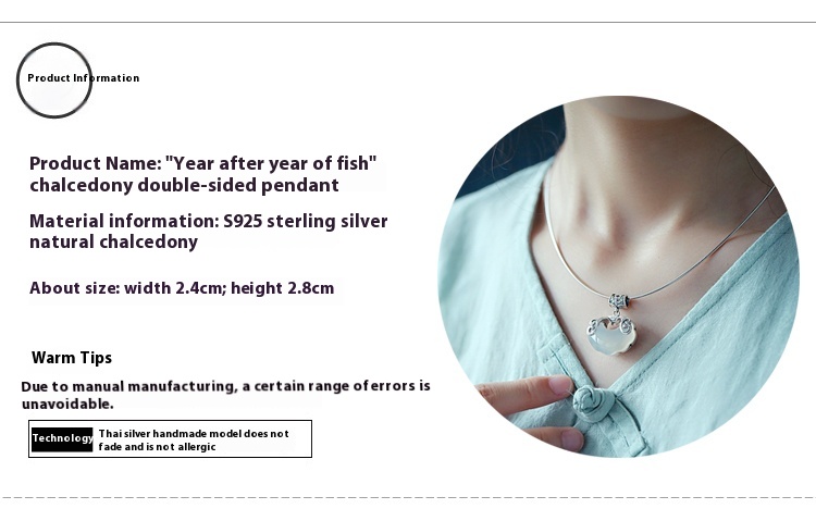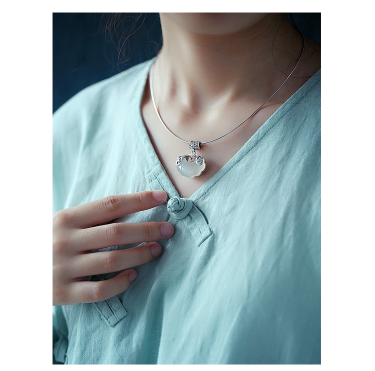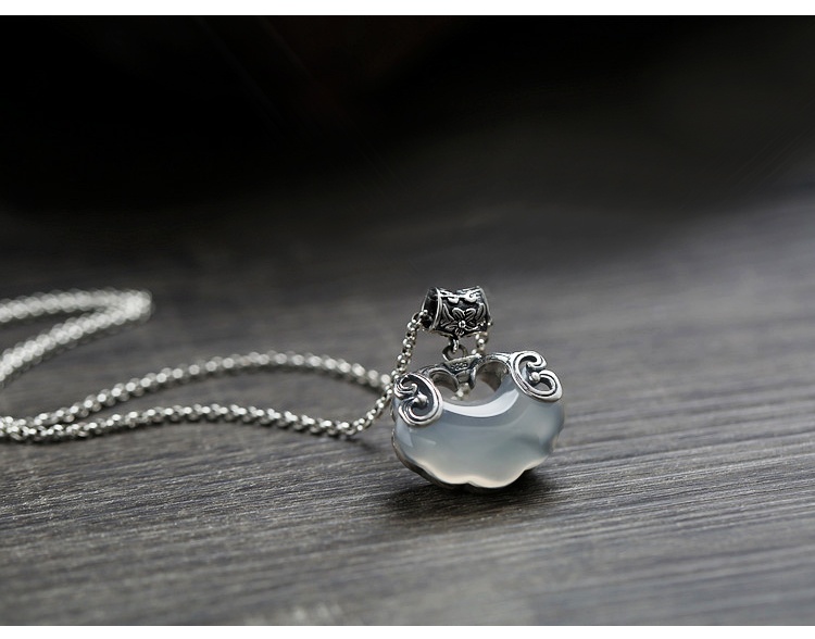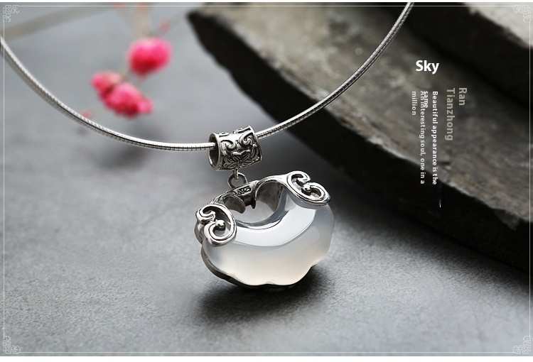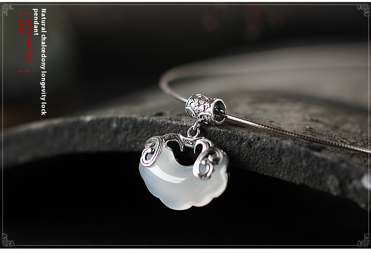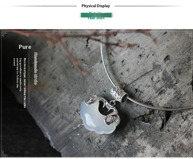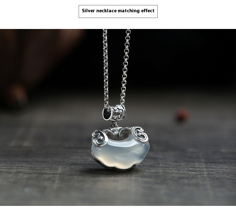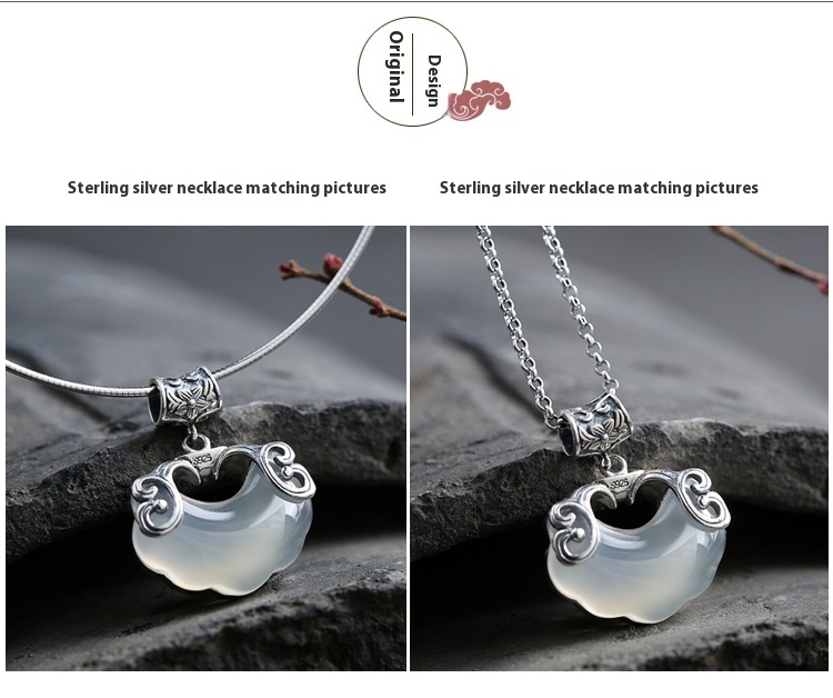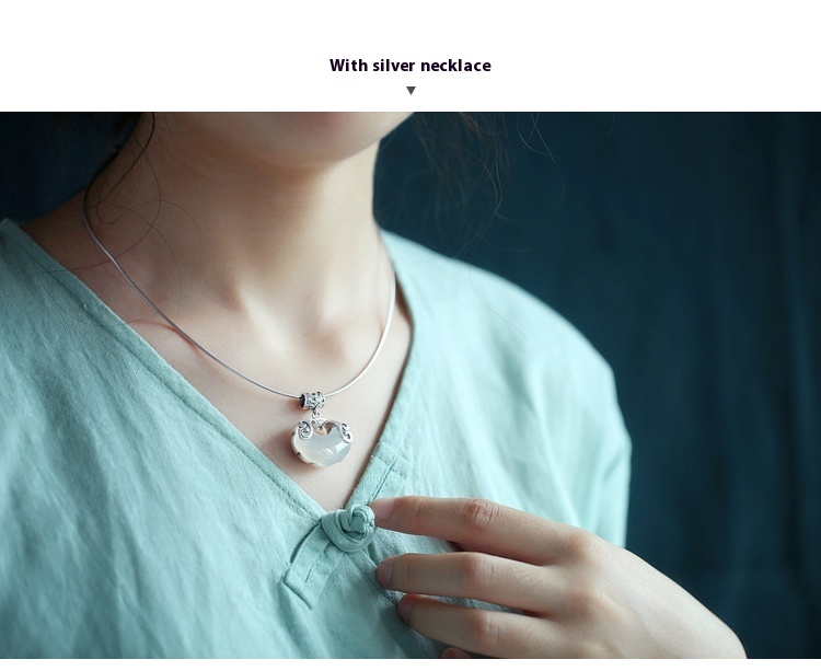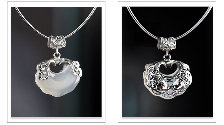 Jade Top Koi Sterling Silver Jade Pendant Natural Chalcedony Longevity Lock Collar