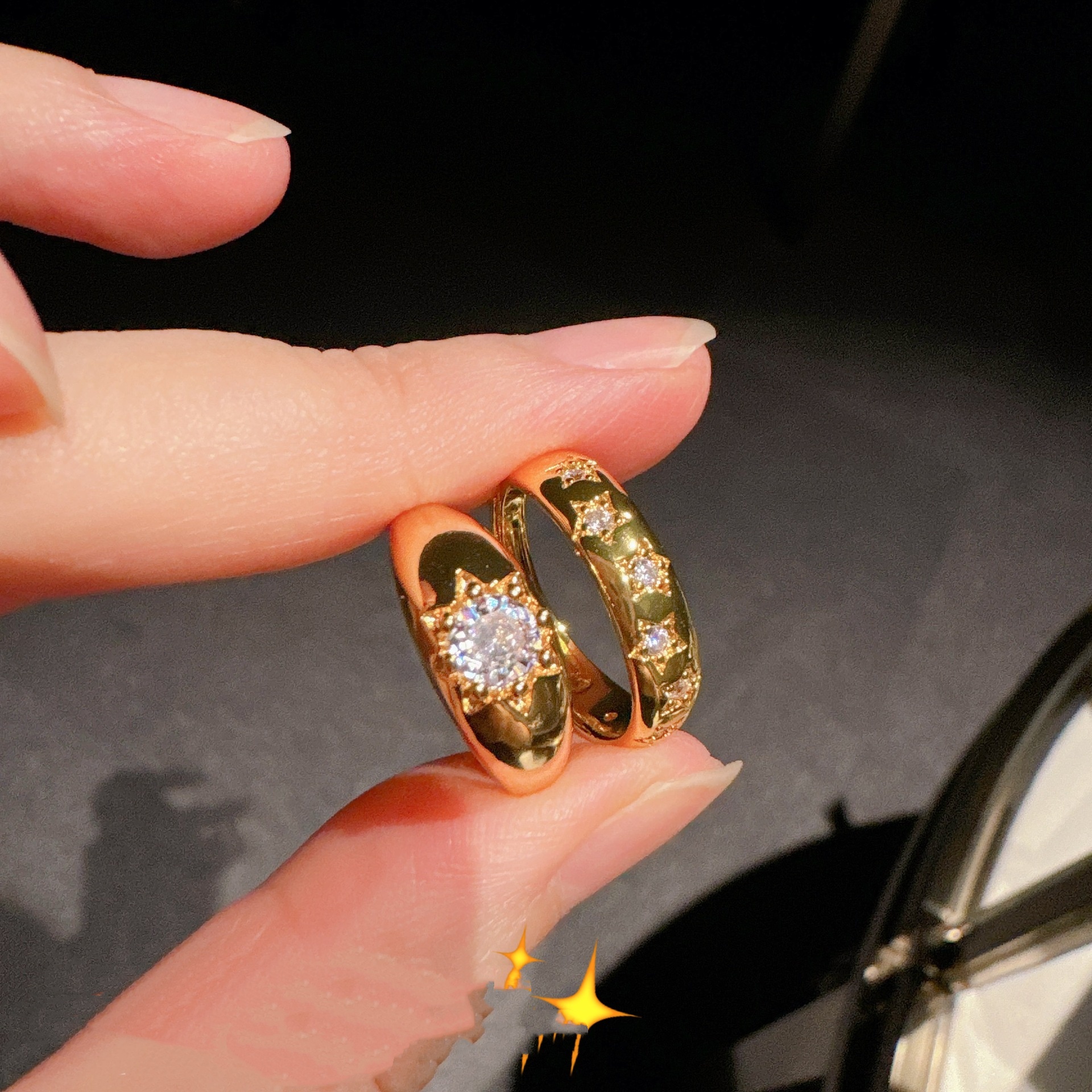 Color: gold-plated glossy starry zircon opening ring without box, gold-plated glossy asterism zircon opening ring without box