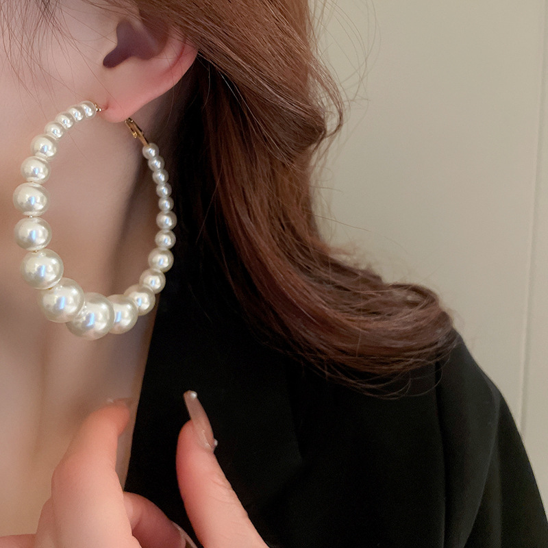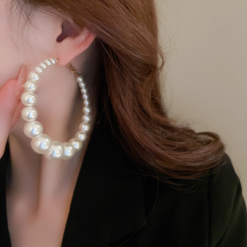 Women's Silver Needle Pearl Retro Exaggerated Earrings
